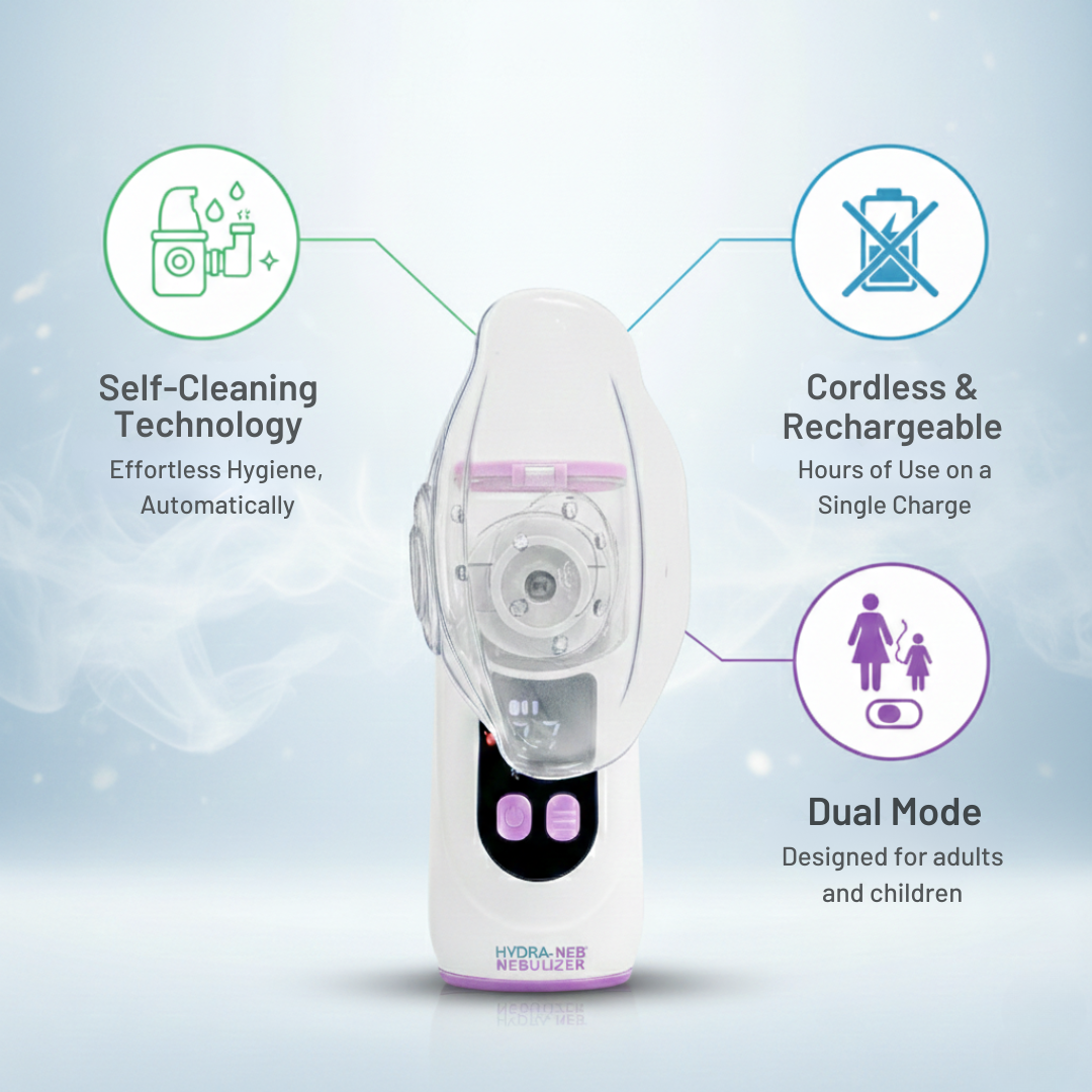 At under 25dB, the Hydra-Neb runs quieter than a library whisper. No disruptive noise during sessions safe and comfortable for children, light sleepers, and busy households.
