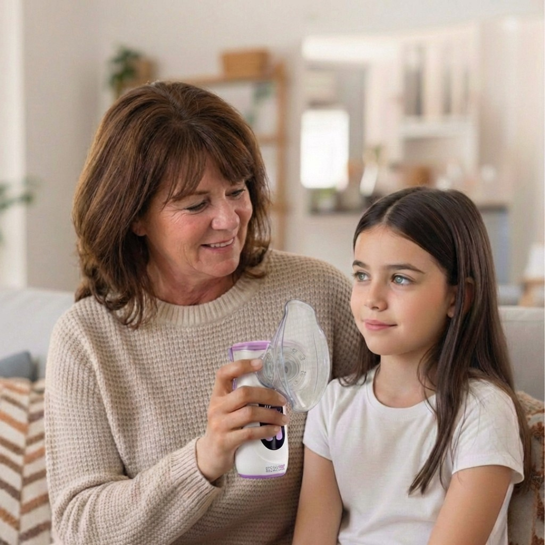 Comfort shouldn't be complicated. Our portable mesh nebulizer delivers consistent, fine saline mist to help keep airways hydrated and comfortable — quietly, cordlessly, and without fuss. Lightweight enough for travel and simple enough for the whole family, it fits naturally into your daily routine whether you're at home or on the go.